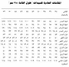 جداول المقاسات الأساسية للسيدات والأطفال والرجال حياتي
