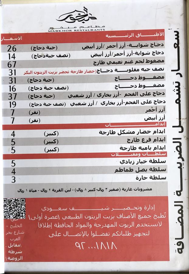 مطعم مبخور المنيو ورقم الهاتف والعنوان