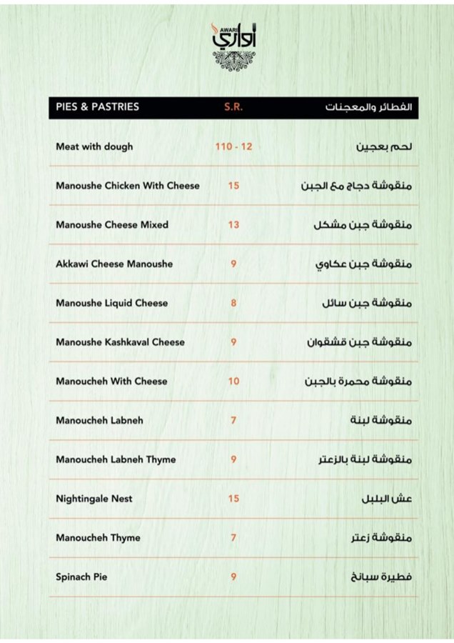 مطعم اواري المنيو وارقام التواصل وعنوانهم